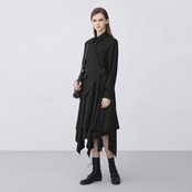 レディース開き襟ストライプ切替ウエストマーク裾不規則デザイン長袖ワンピースS2138121491